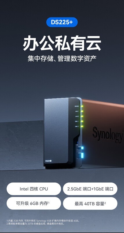 (中关村在线 济南行情)近日,群晖DS225+NAS网络存储在中关村在线经销商“Synology群晖禾力专营店”有售,优惠促销,联系电话:0531-88812406 / 16653192406 / 18660120535 / 15688886003,商家地址: 济南工业南路山钢新天地广场8-1013,山大路华强广场4层北区H4009。